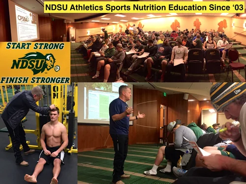 So the student athletes at NDSU don't have a training table or sophisticated supplement program (money), but they do work hard and love their sports. And after a hard workout they breakout recovery beverages like chocolate milk they get from the NDSU Campus Dairy! Long before it was fashionable to use Chocolate Milk as a recovery beverage, NDSU and schools like Wisconsin Athletics were leaning on relationships with campus dairy's for a low ball cost on some chocolate milk! We are talking early '90s at Wisconsin and when I showed up at NDSU in '01! That whole Chocolate Milk campaign by the Dairy Council didn't start until after '06 (will confirm that date). I like working with athletes who show up everyday and go hard without all the trimmings that come with D1A athletics. While they deserve more, they don't have an attitude about it. They didn't have it all in high school so operating with modest support services and resources in college is not a big stretch for them. Still you think feeding would be a fundamental that all athletic departments would strive to fulfill, no matter what level of NCAA athletics we are talking. They are a good cause these student-athletes. Sports RDs are in the trenches with them as much as anyone, helping them navigate the not so healthy college lifestyle waters ;)